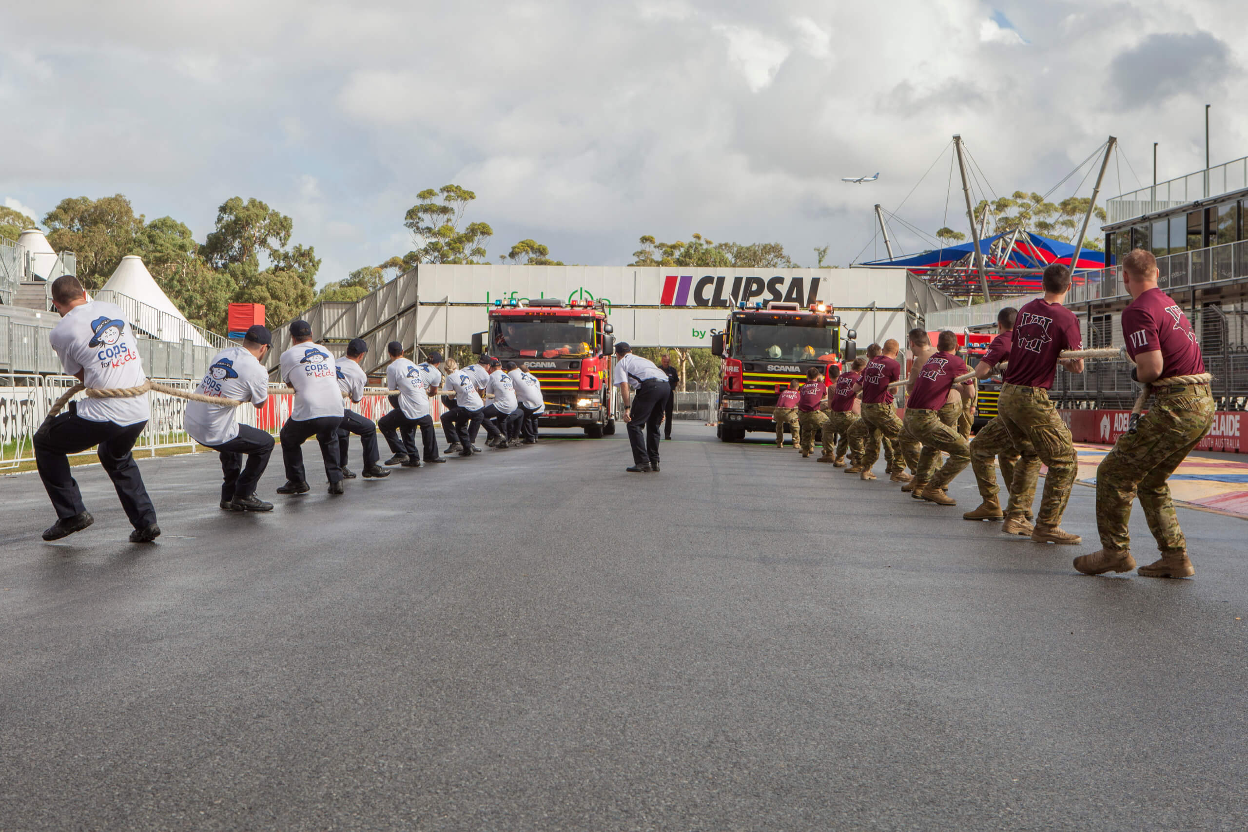 On a very wet Sunday during the March long weekend, a very proud CFK team took up the long rope in the annual Fire Truck Pull against the Army, Airforce and our long-time rivals, members of the Australian Professional Firefighters Foundation (Airport and MFS firees) on the main straight of the Clipsal Track.
